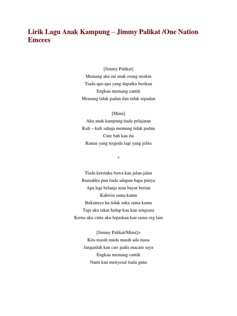 Lirik Lagu Anak Kampung