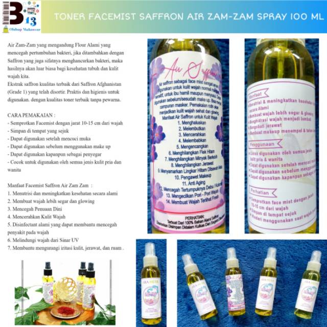 Toner Facemist Saffron Air Zam Zam Spray 100 Ml B8 Shopee Indonesia