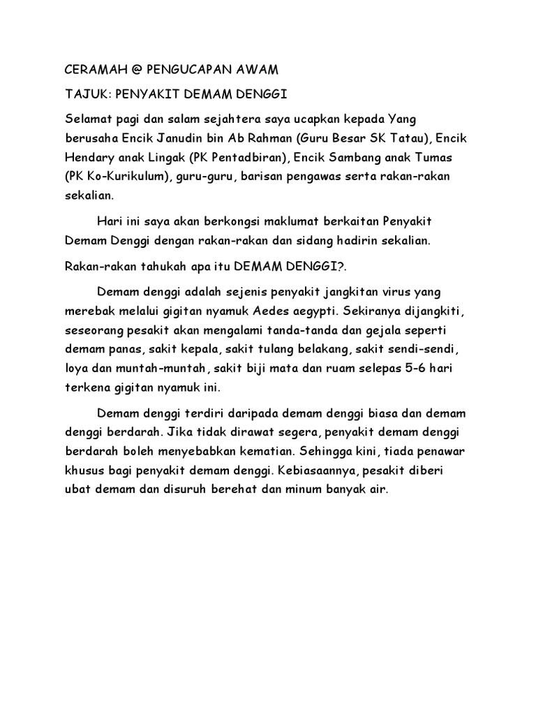 Contoh Karangan Langkah Langkah Mencegah Demam Denggi