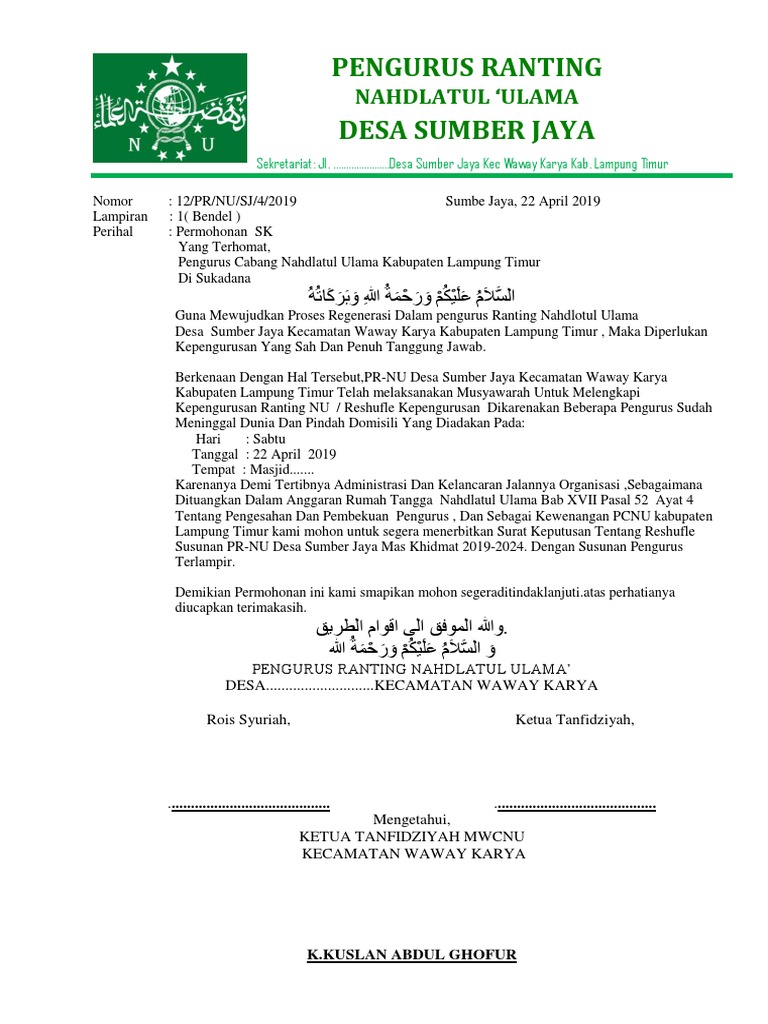 Surat Permohonan Sk Pelantikan Ranting Nu