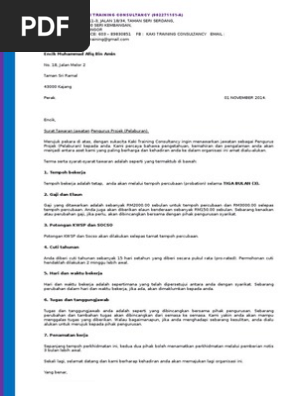 Contoh Surat Tawaran Kerja Tetap Di Malaysia