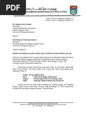 Contoh Surat Jemputan Sebagai Panel Forum