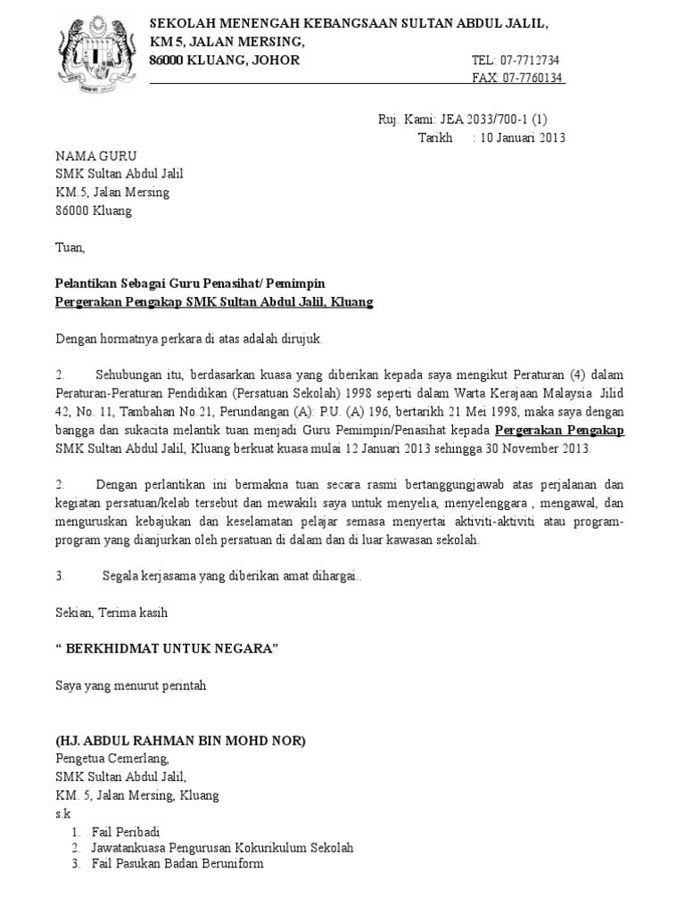Contoh Surat Rasmi Untuk Pengetua Sekolah Surat R