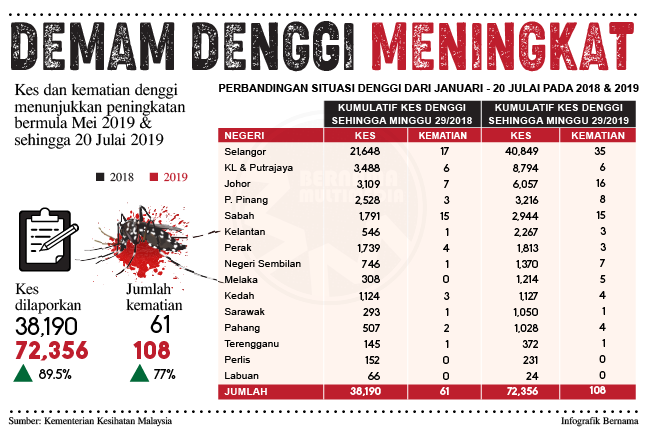 Johor bahru 23 ogos johor mencatatkan 28 kematian akibat demam denggi bagi tempoh januari sehingga 15 ogos lepas. Kenyataan bersama kementerian kesihatan dan jabatan alam sekitar singapura semalam memaklumkan sebanyak 8 020 kes denggi dilaporkan setakat 20 julai lima kali ganda berbanding tempoh sama tahun lepas. Kenyataan akhbar ketua pengarah kesihatan situasi semasa demam denggi serta zika di malaysia bagi minggu 43 2016 dari 23 29 oktober 2016 press kenyataan akhbar demam denggi dan zika minggu 43. Unsubscribe from po tek soh.