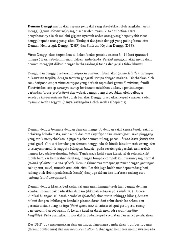 Demam Denggi Merupakan Sejenis Penyakit Yang Disebabkan Oleh
