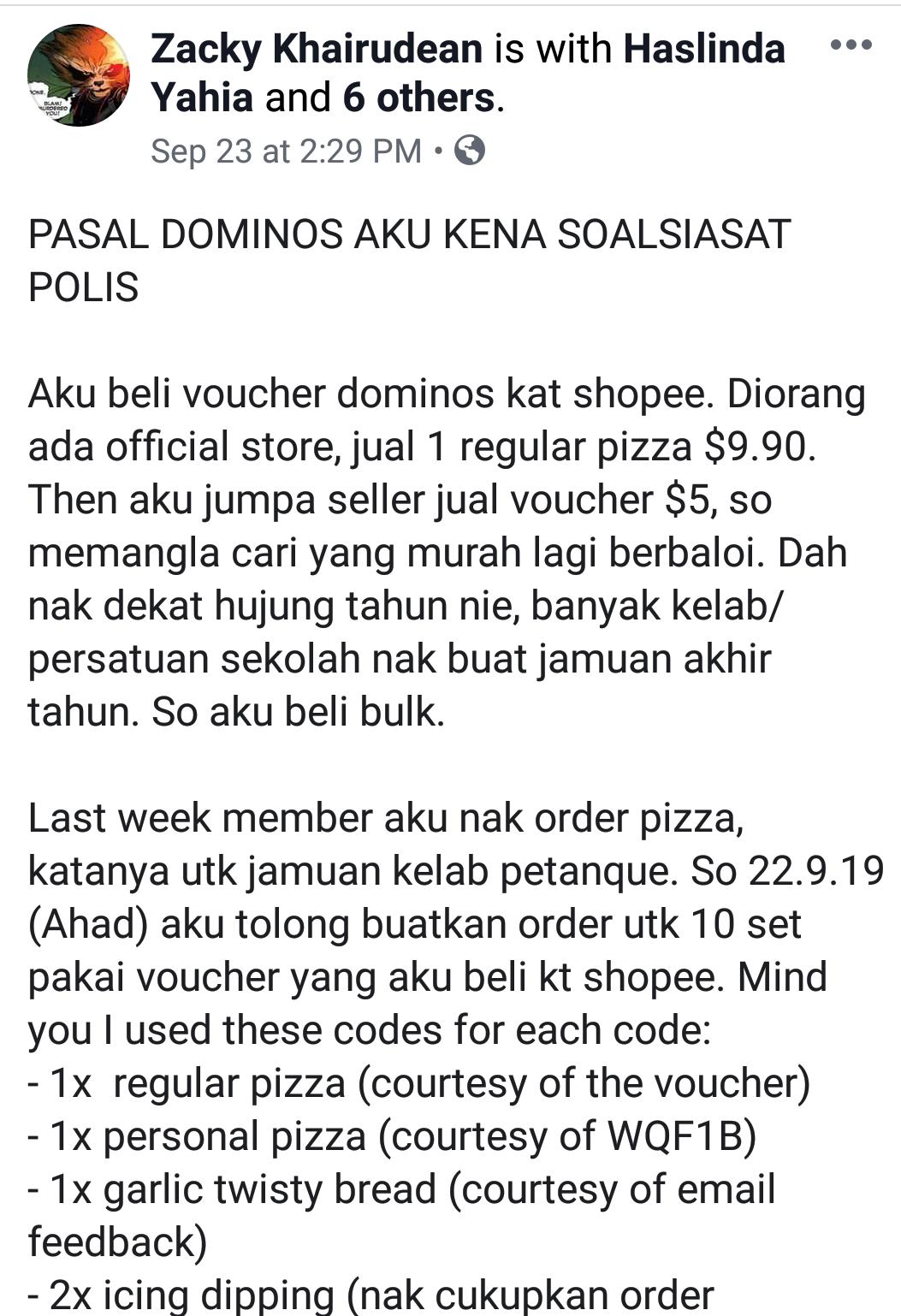 Kerana Diskaun Dominos Pizza Tak Pasal Pasal Aku Kena Siasat