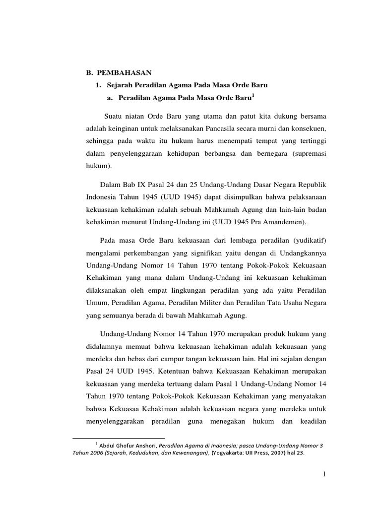 Isi Peradilan Agama Pada Masa Orde Baru