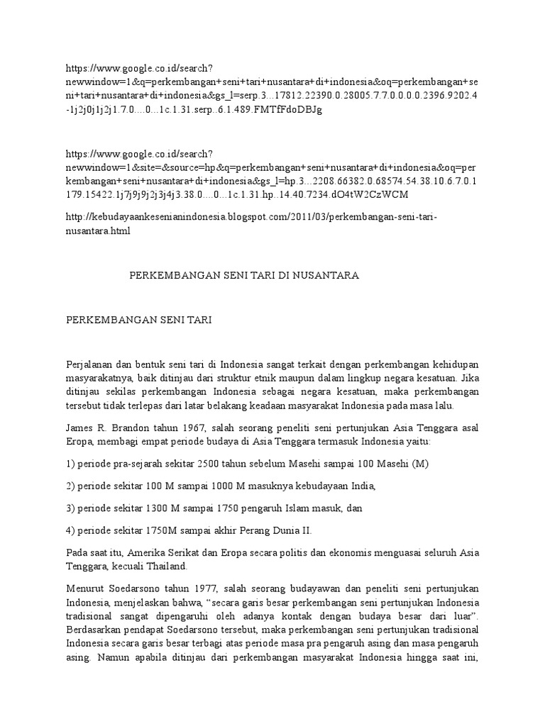 Perkembangan Seni Tari Di Nusantara Art And Culture