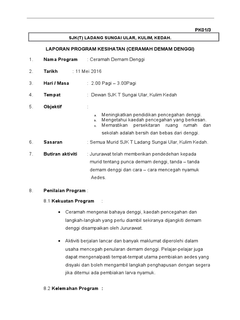 Laporan Pendidikan Pencegahan Denggi 2014 Docx Document