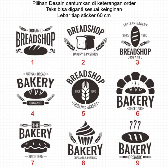 Sticker Custom Teks Logo Toko Roti Bakery 9 Model Stiker Kaca