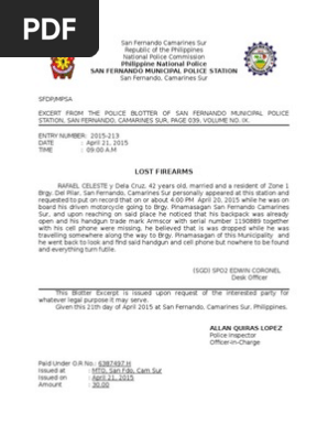 Sample Letter To Police To Report Lost Or Stolen Mobile Phone