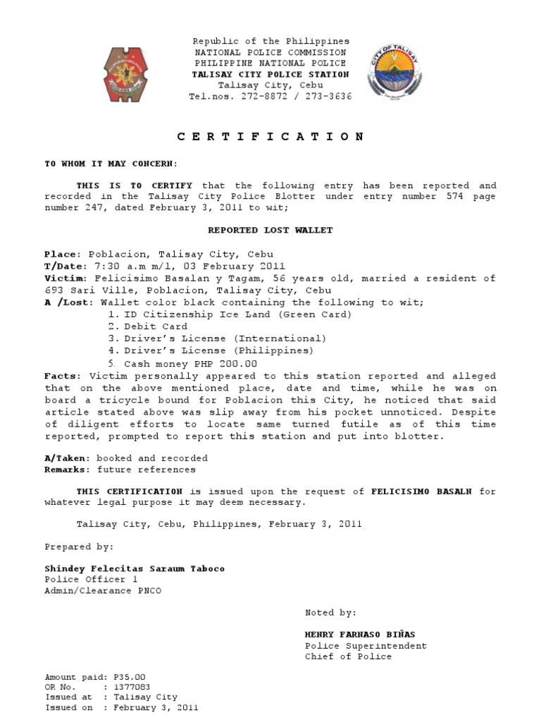 Lost Wallet Police Report