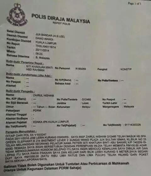 Contoh Laporan Polis
