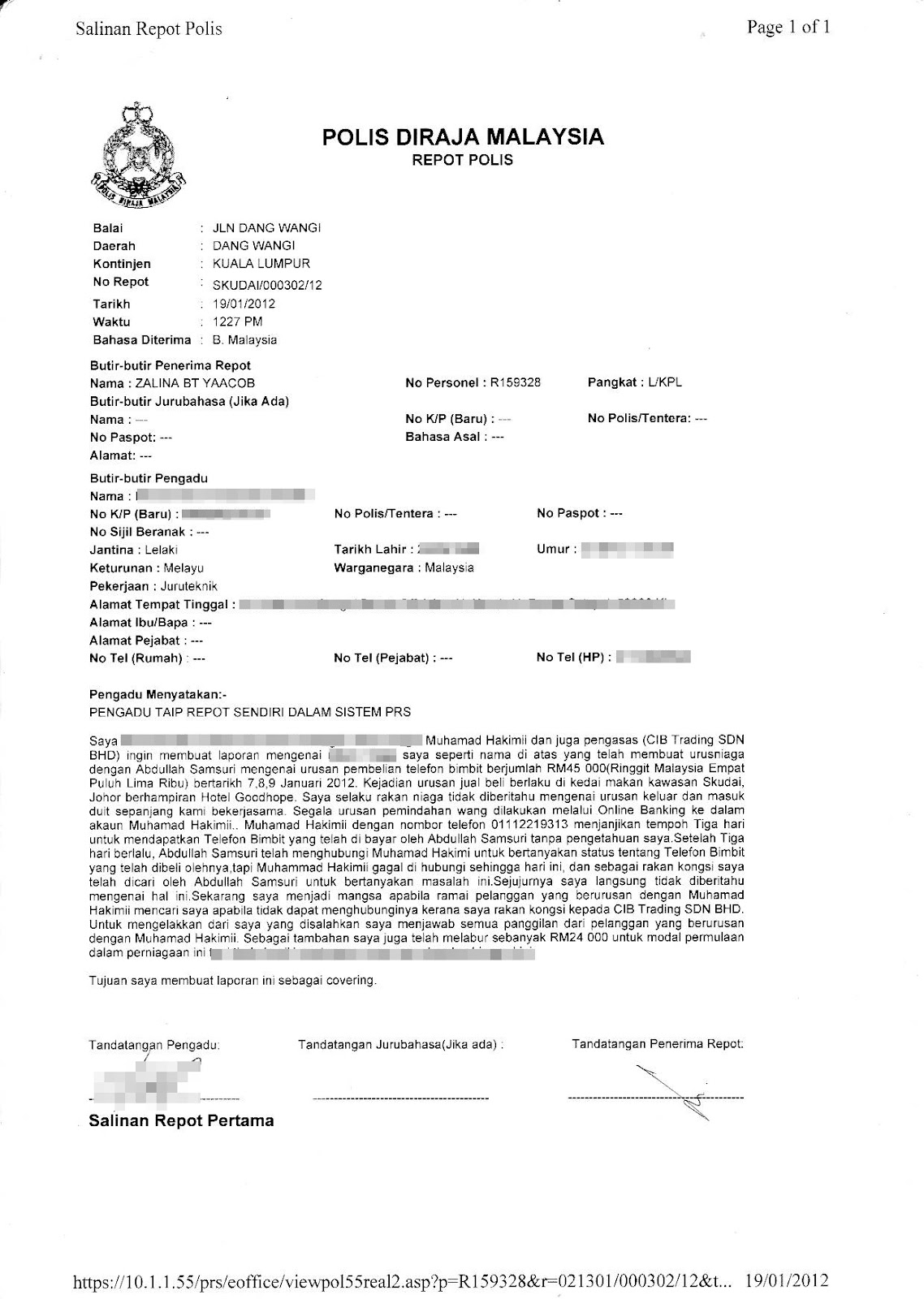 Sistem semakan online memudahkan semakan status perkhidmatan polis secara atas talian. Cara membuat repot mengikut seksyen 107 kanun prosedur jenayah apabila pengaduan atau repot dibuat kepada seorang ketua polis balai kpb berkenaan kejadian sesuatu kesalahan kpb itu atau pun pegawai polis lain di bawah arahannya hendaklah menulis maklumat itu dan setelah menulis hendaklah dibaca semula kepada pengadu. Though it has been a year now since its debut shockingly many malaysians are still unaware of this amazing creation. Report polis cara membuat repot mengikut seksyen 107 kanun prosedur jenayah apabila pengaduan atau repot dibuat kepada seorang ketua polis balai.