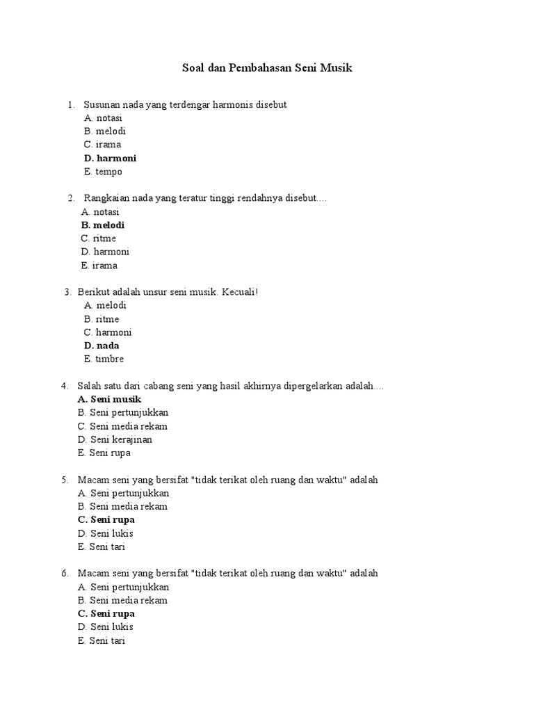 Kumpulan Soal Seni Budaya Sma Smk Beserta Jawaban