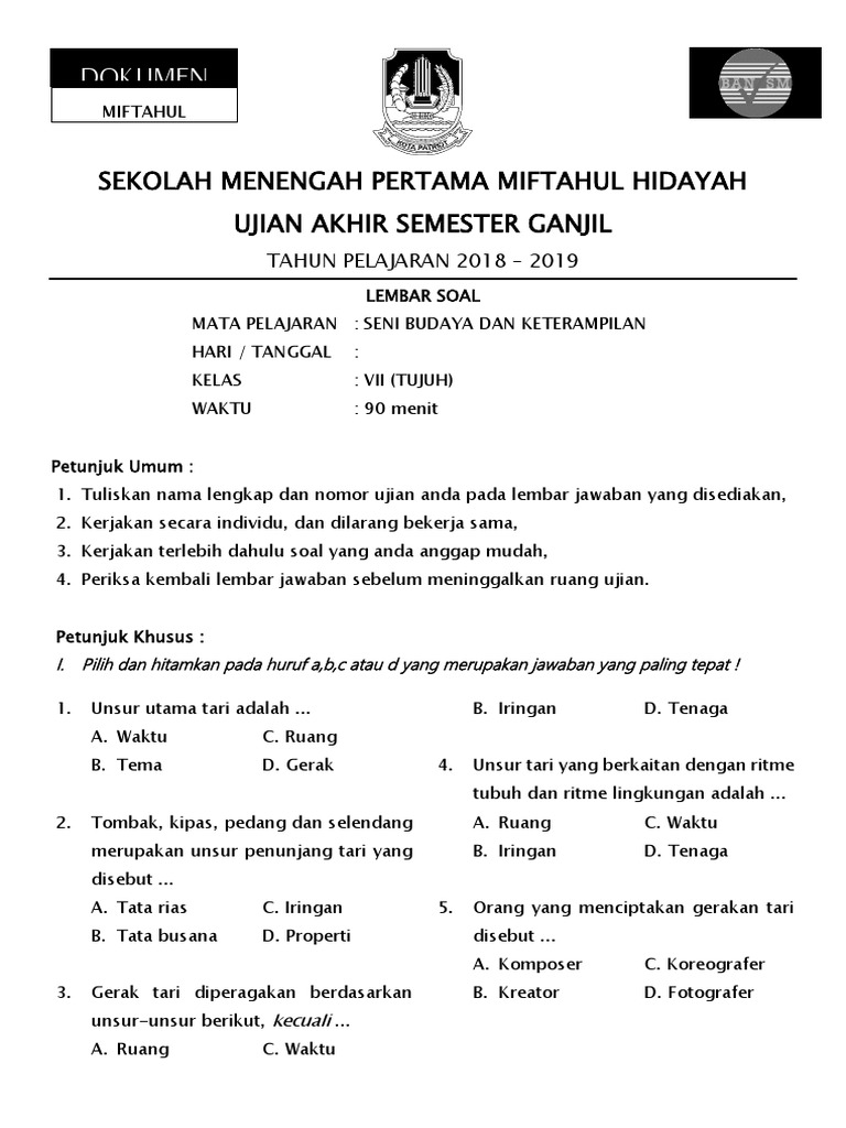 Doc Soal Ujian Kelas Vii Seni Budaya Lisa Mariya Academia Edu