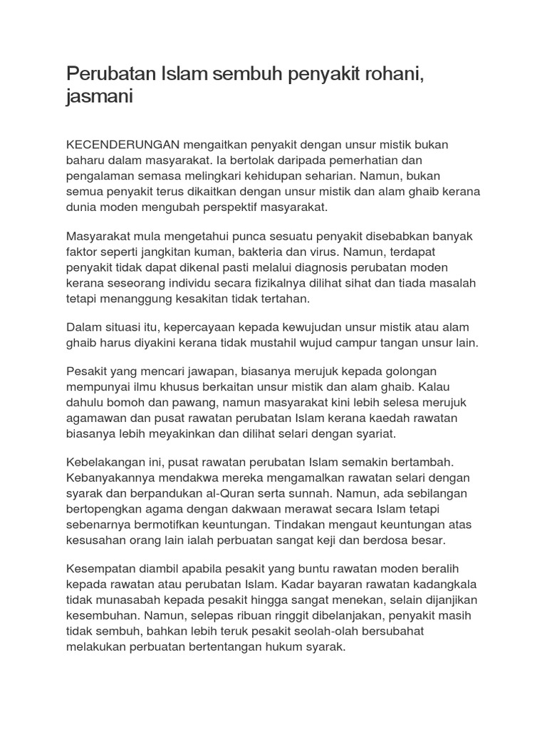Perubatan Islam Sembuh Penyakit Rohani Jasmani