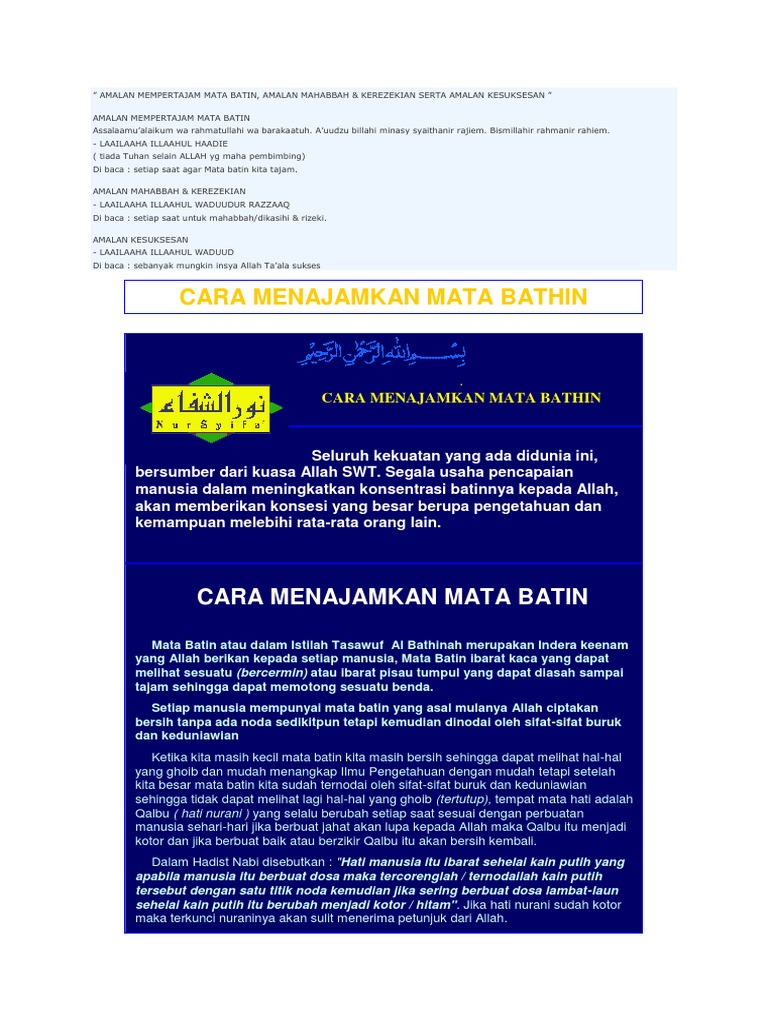 Amalan Membuka Mata Batin Dengan Ayat Amalan Ayat