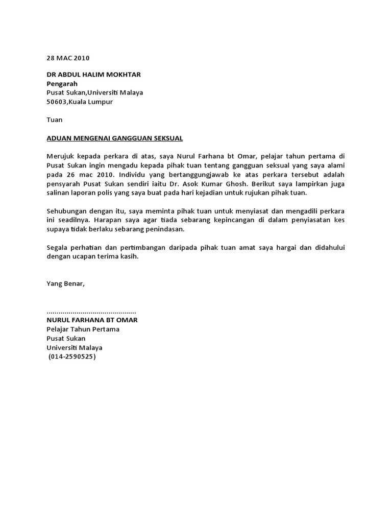 Surat Aduan Gangguan Seksual