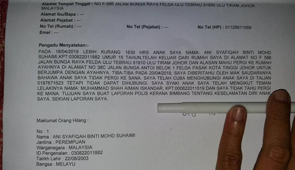 Saya Syak Anak Ikut Teman Lelakinya Ibu Buat Laporan Polis