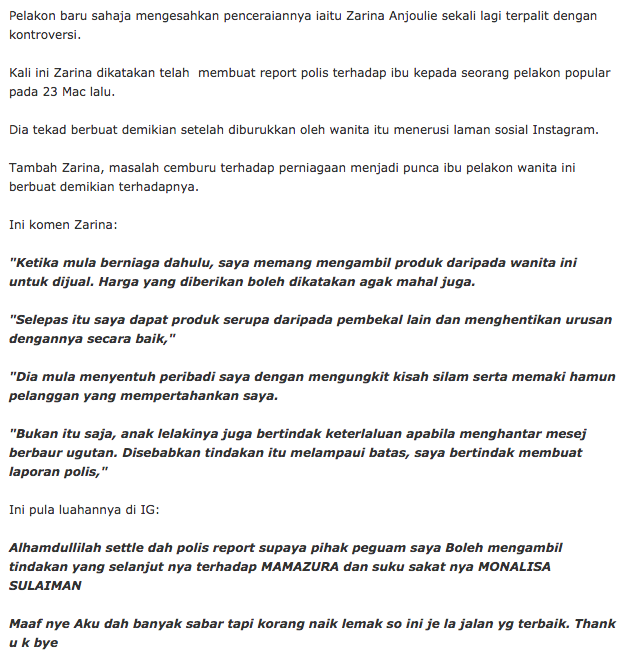 Makin Panas Pelakon Baru Bercerai Zarina Anjoulie Buat Report