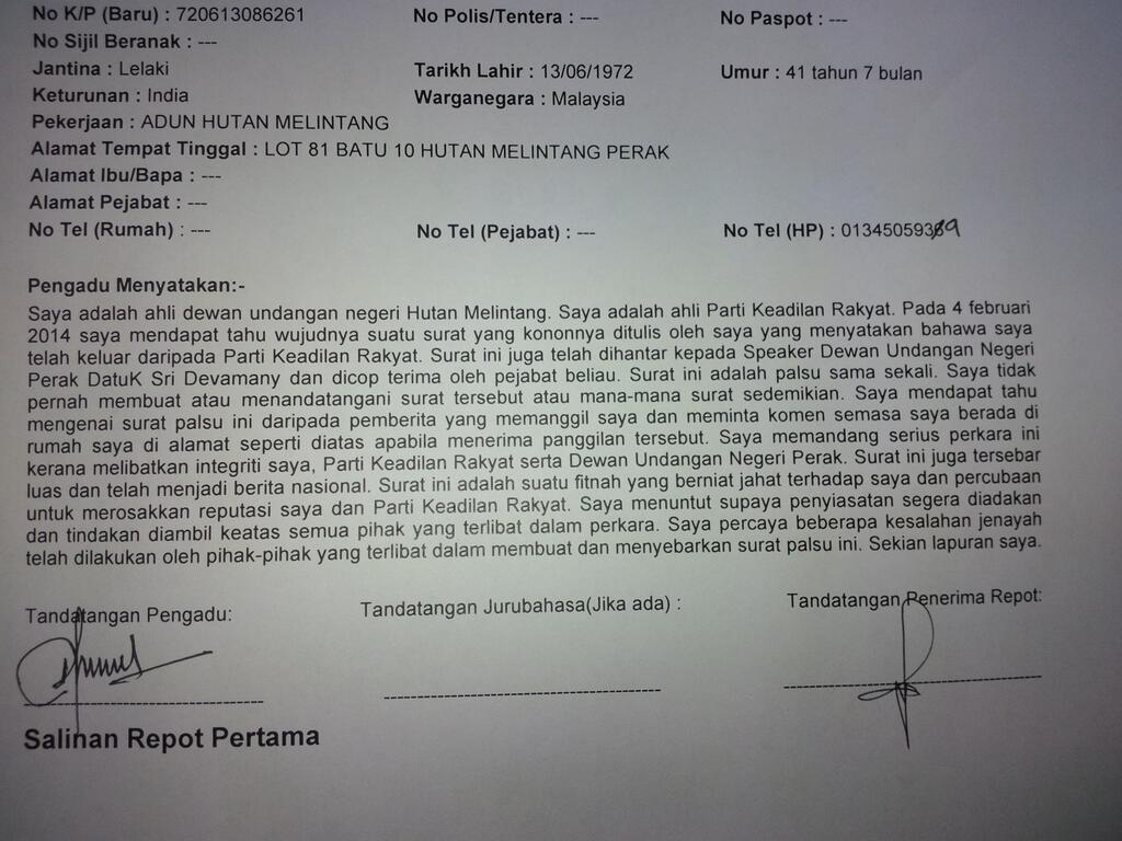Laporan Polis Telah Dibuat Terhadap Laporan Palsu Ini Sumber