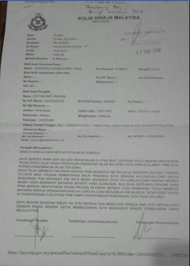 Buat Laporan Palsu Elak Bayar Hutang Harian Metro