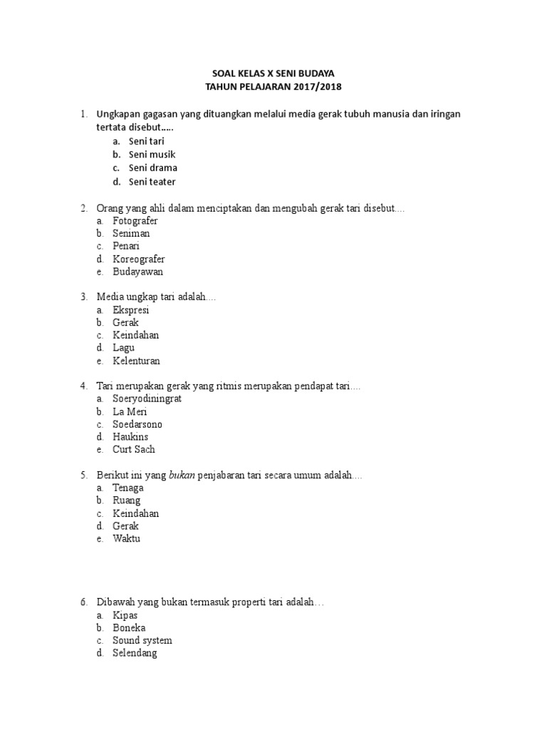 Kisi Kisi Soal Kls X Seni Budaya 2017 2018 Doc