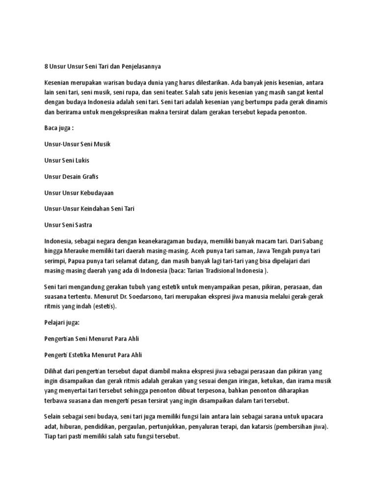 8 Unsur Unsur Tari Beserta Pengertian Fungsi Dan Penjelasannya