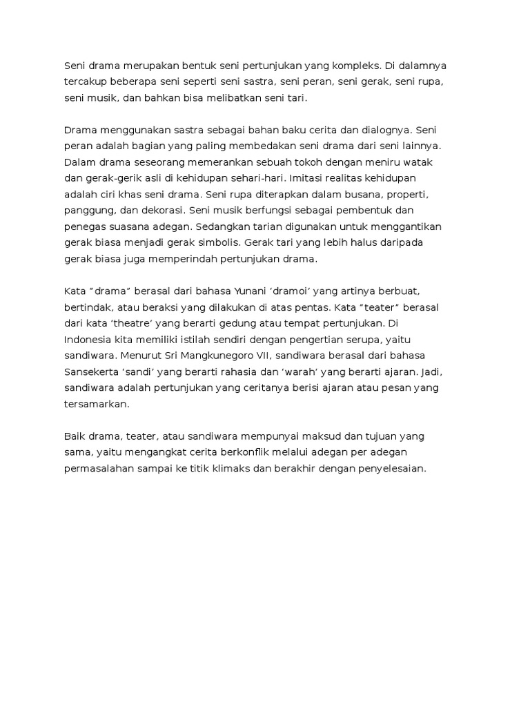Seni Drama Merupakan Bentuk Seni Pertunjukan Yang Kompleks