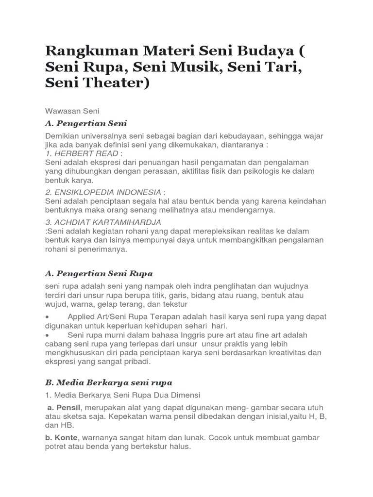 Doc Rangkuman Materi Kelas Xi Mata Pelajaran Seni Budaya
