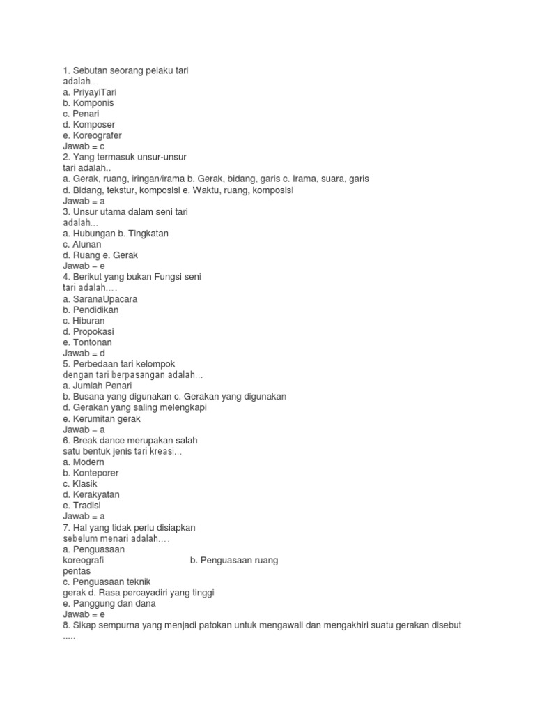 Kumpulan Soal Soal Dan Jawaban Seni Tari Kelas Xi Home Business