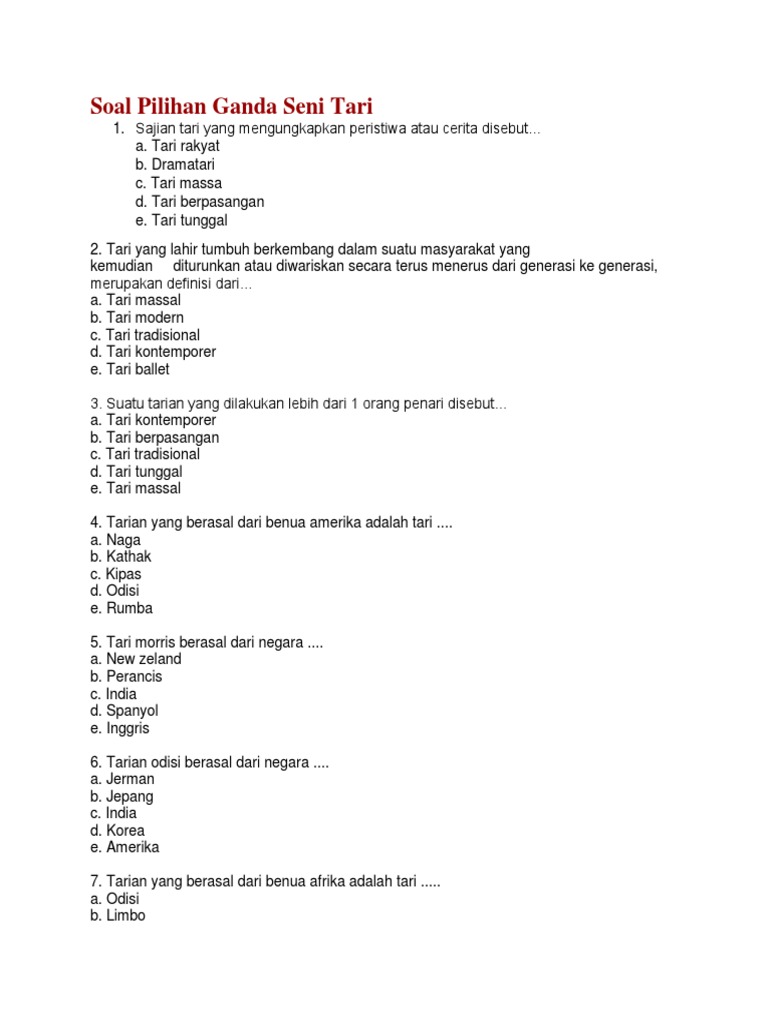 30 Soal Seni Tari Dan Jawaban Sma Smk Pilihan Ganda Muttaqin Id