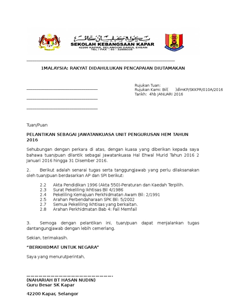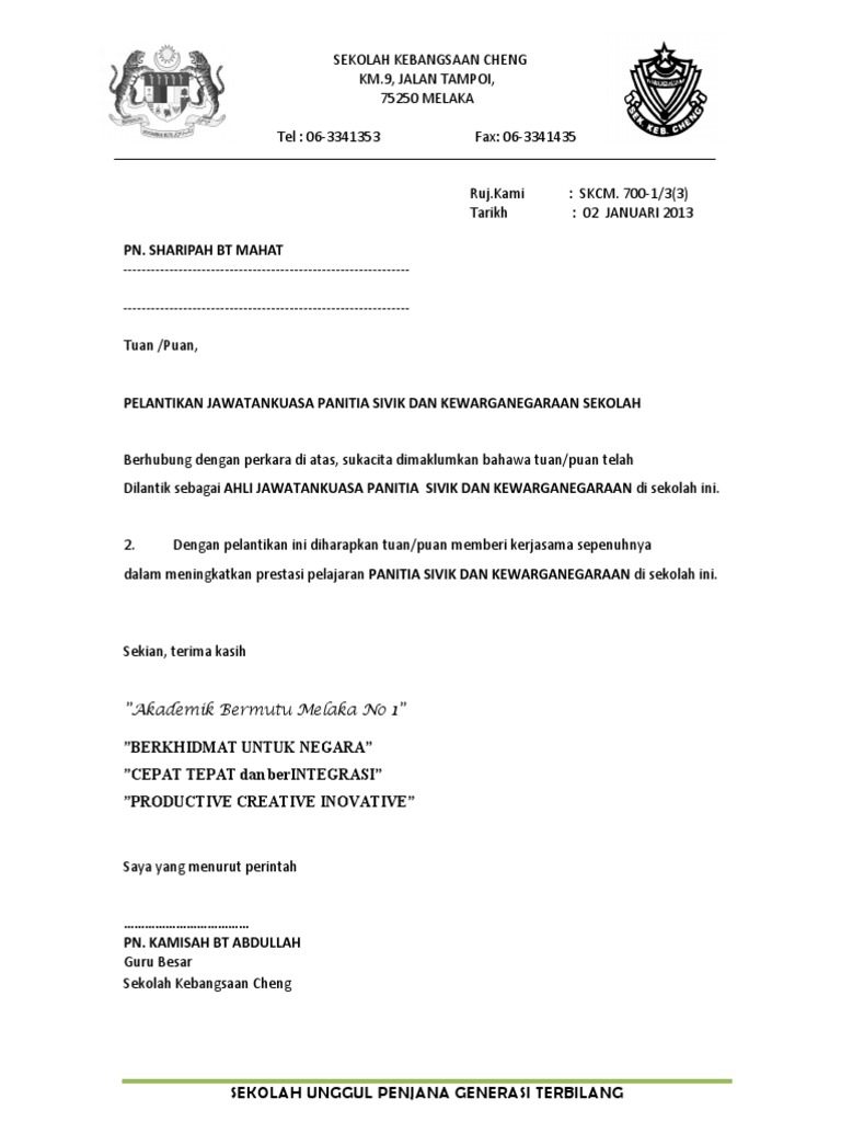 Muat Turun Contoh Surat Surat Perlantikan Jawantankuasa Di Sekolah