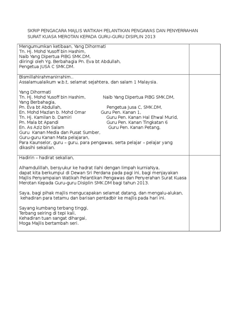 Ucapan Majlis Watikah Pelantikan Pengawas Contoh Poll