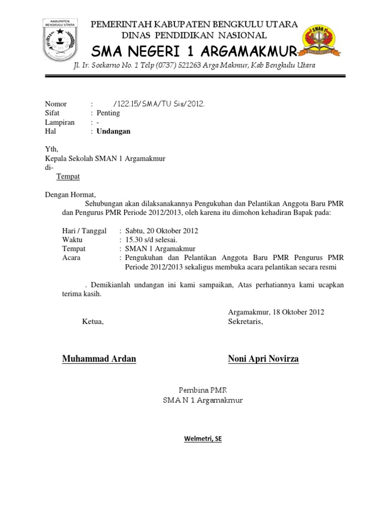 Doc Contoh Undangan Latihan Gabungan Pmr Wira Sman 1 Indralaya