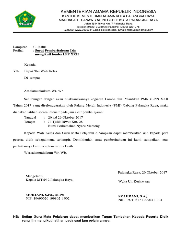 Contoh Surat Ijin Mengikuti Kegiatan Diluar Sekolah Belajar Office