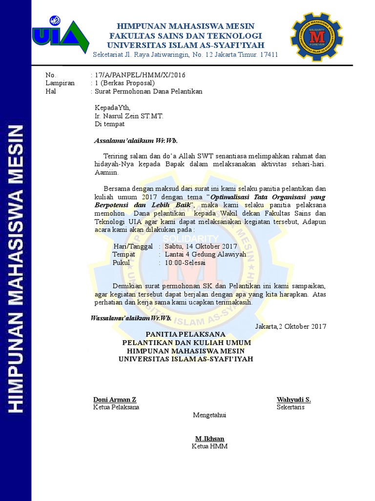 Surat Permohonan Dana Pelantikan Doc