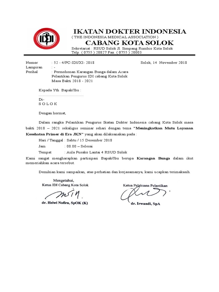 Karangan Bunga Undangan Permohonan Pelantikan Skp