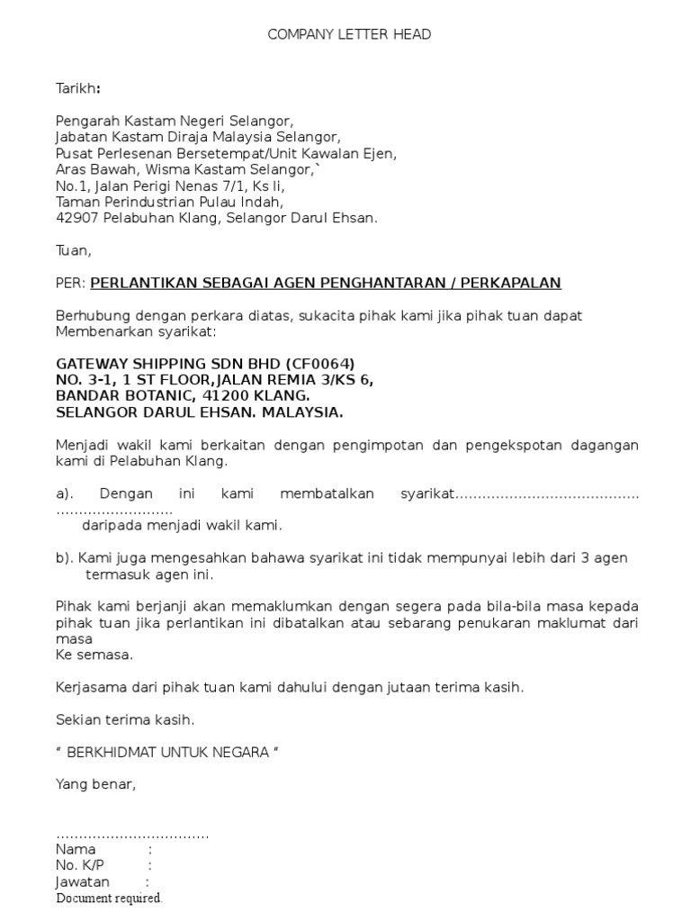 Surat Perlantikan Agen Kastam