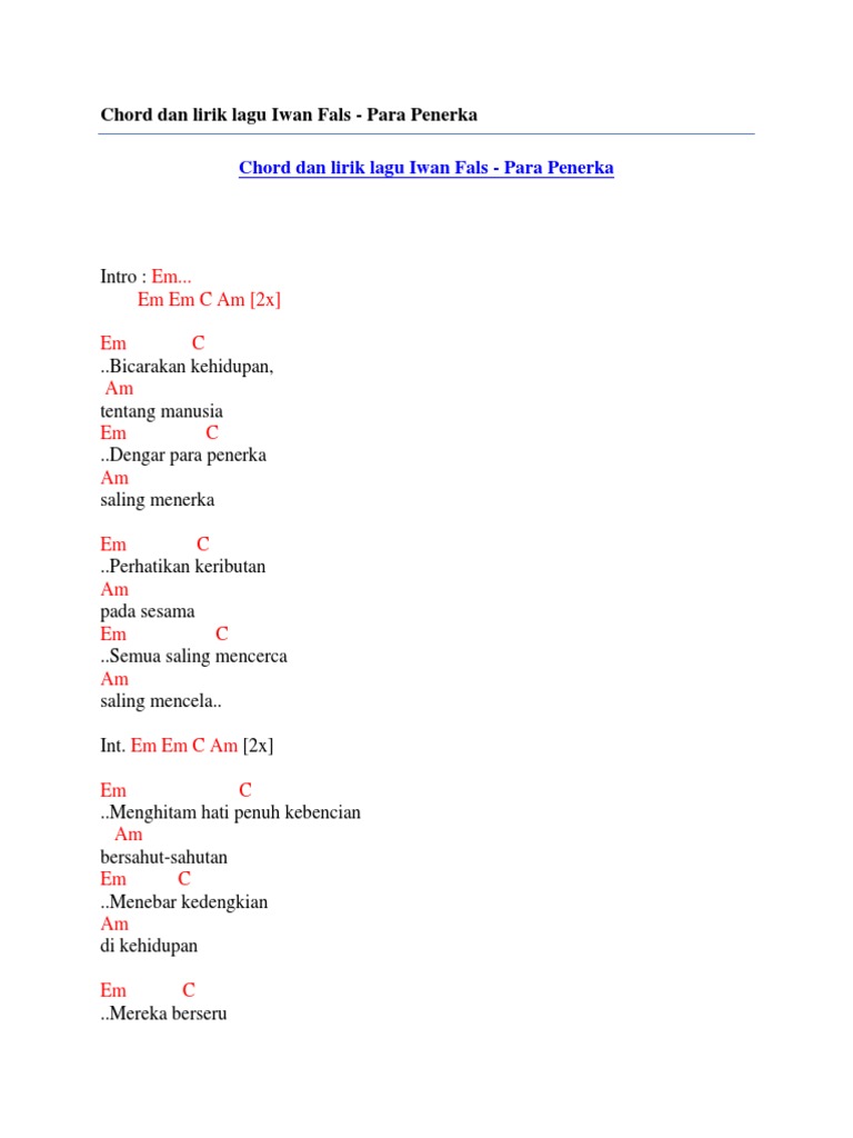 Chord Gitar Lagu Iwan Fals Chord Gitar Lagu Lagu Kenangan