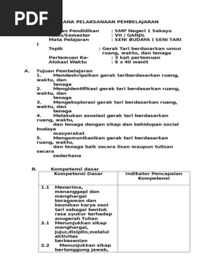 Rpp Seni Tari Materi Seni Tari Berdasarkan Tenaga Ruang Dan Waktu
