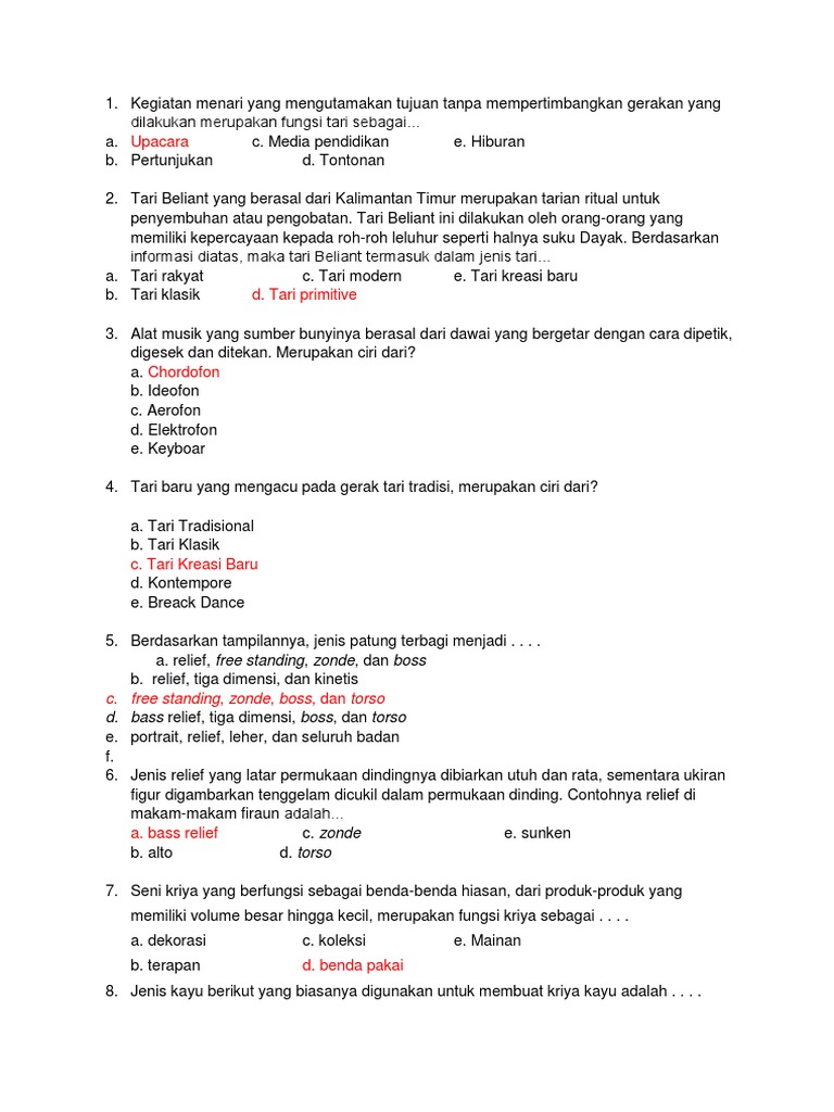 Kumpulan Soal Seni Budaya Sma Smk Beserta Jawaban