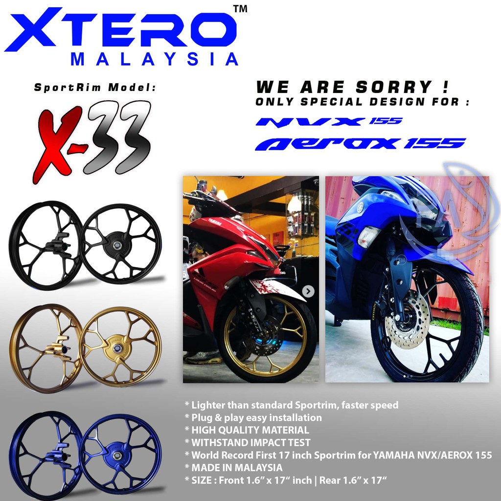 Xtero Sport Rim X 33 Only For Yamaha Nvx 155 Aerox 155 3l 17 Inch